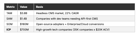 High-growth tech companies (35K companies, $20K ACV) — “The API-first CMS developers love. Ship faster, scale effortlessly, own your content infrastructure.”